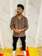 APEXIUM Multi-Style Heavy Corduroy Overshirt - Terracotta Stripes